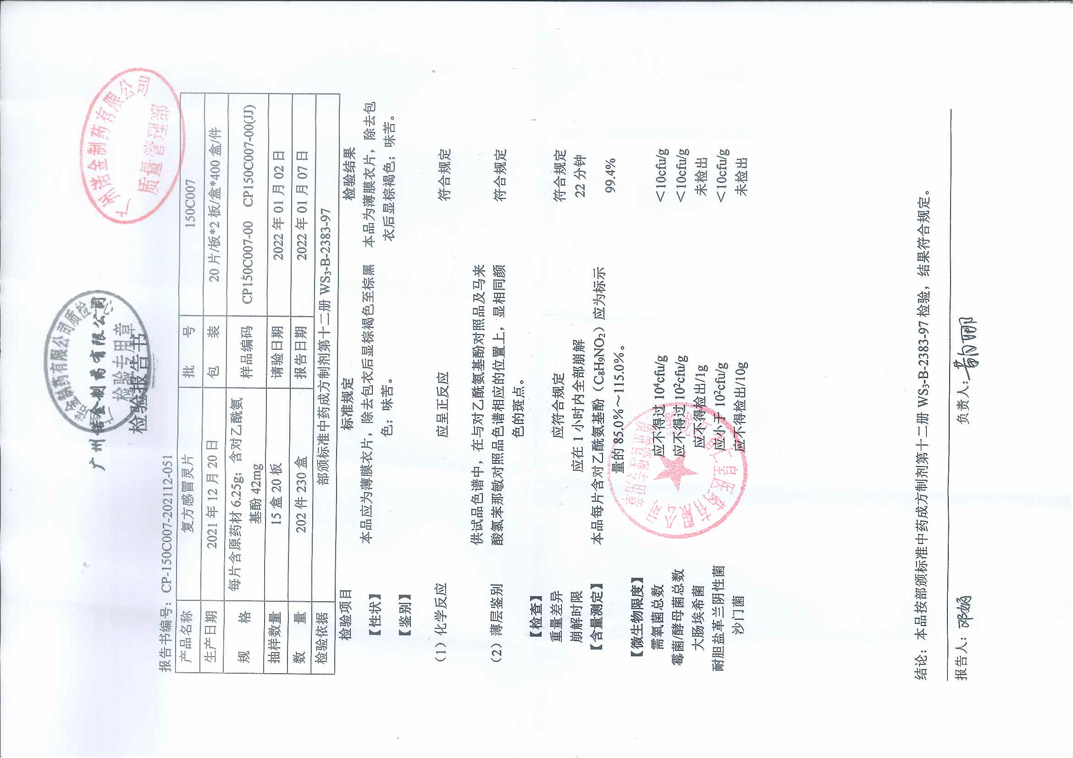 復(fù)方感冒靈片150C