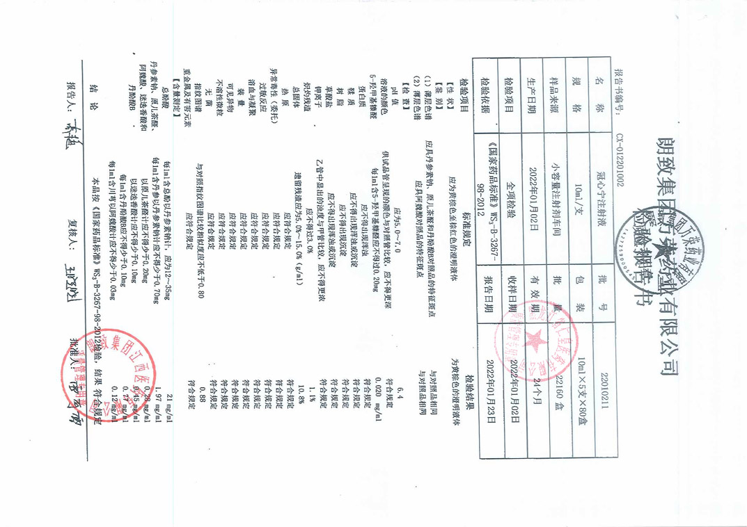 冠心寧注射液2201