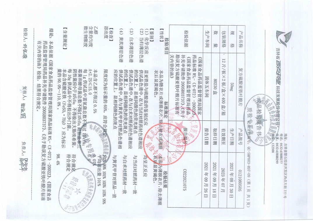 復(fù)方硫酸亞鐵葉酸片0