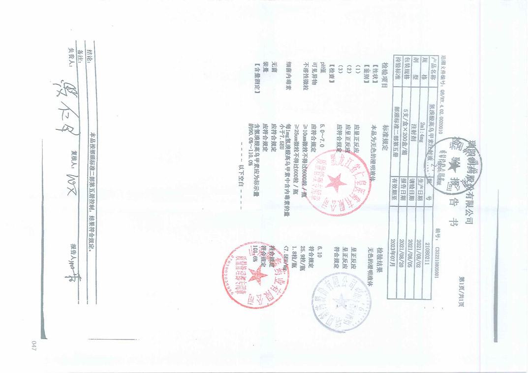 氫溴酸高烏甲素注射液