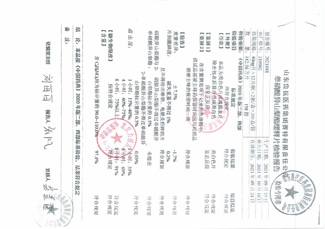 單硝酸異山梨酯緩釋片