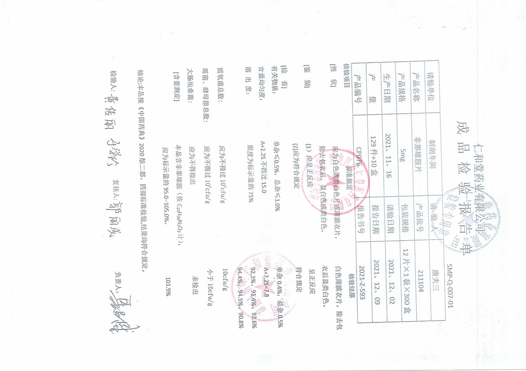 非那雄胺片21110