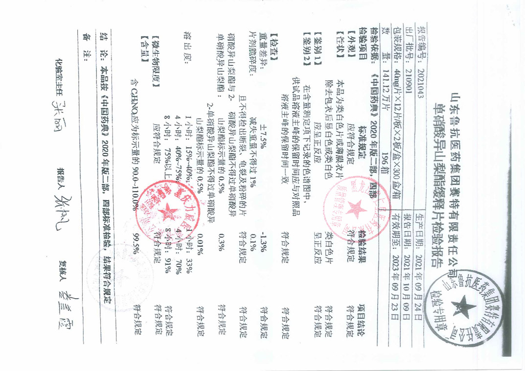 單硝酸異山梨酯緩釋片