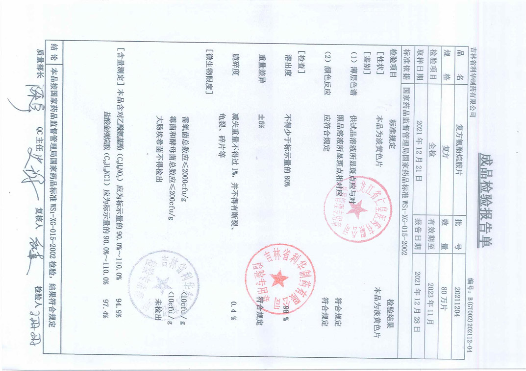 復(fù)方氨酚烷胺片202