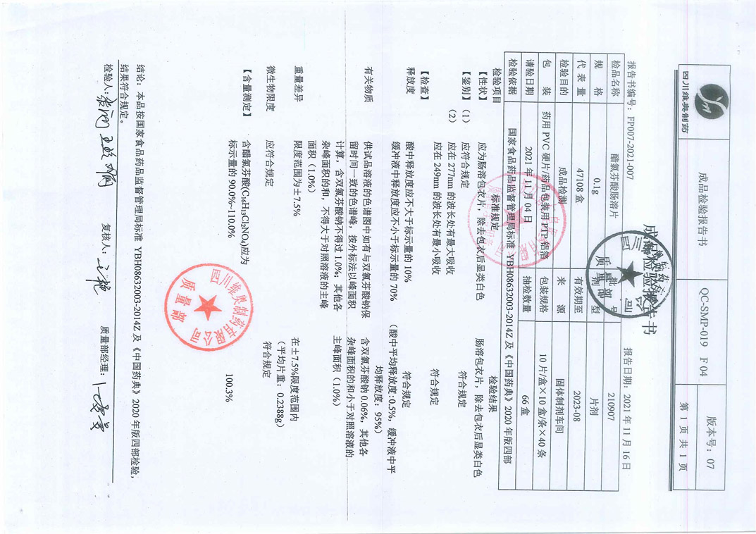 醋氯芬酸腸溶片210