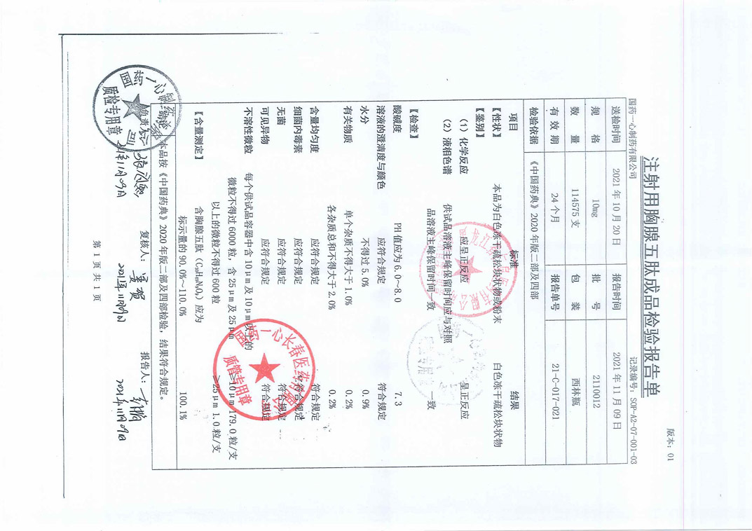 注射用胸腺五肽211