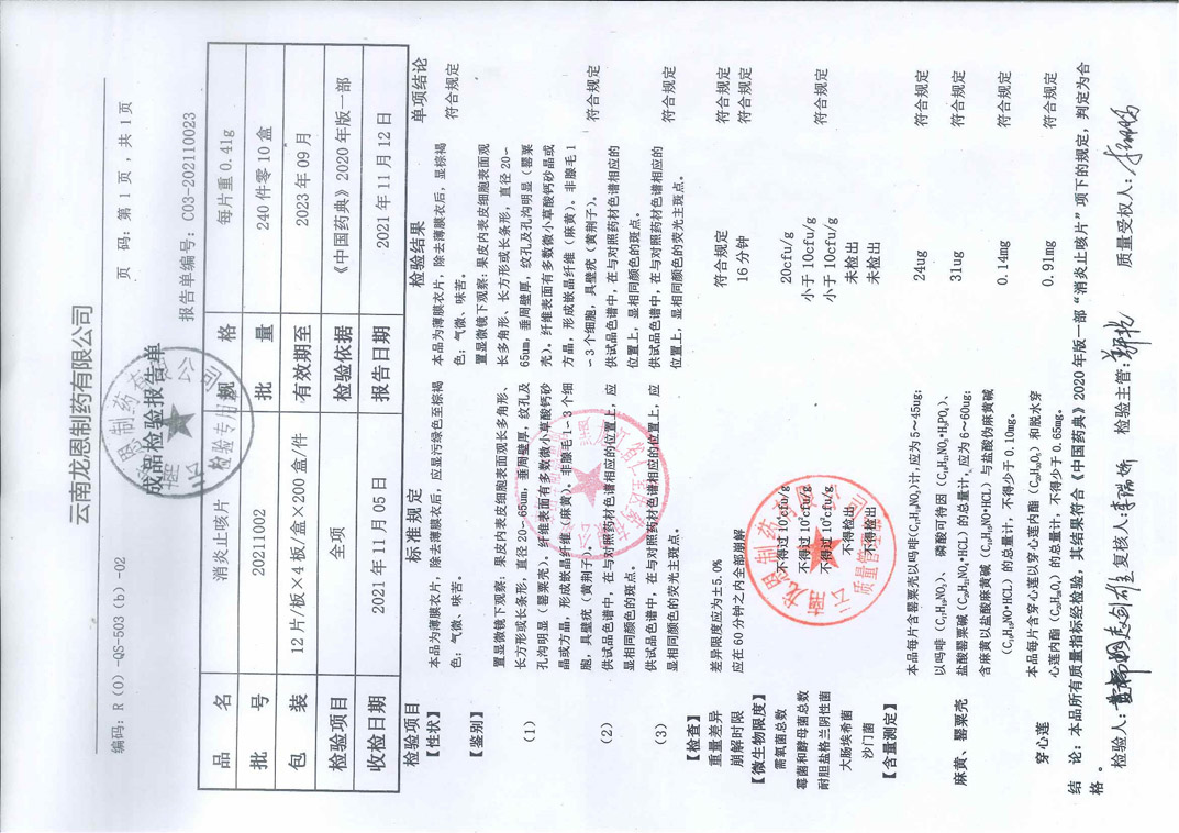 消炎止咳片20211