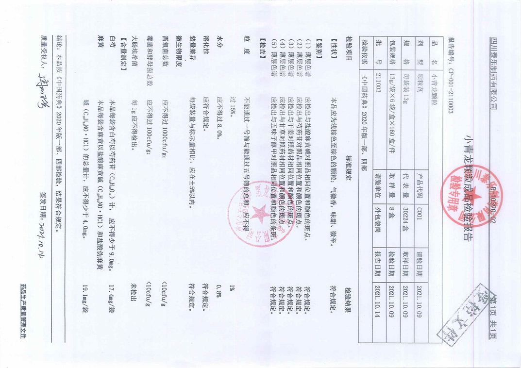 小青龍顆粒21100
