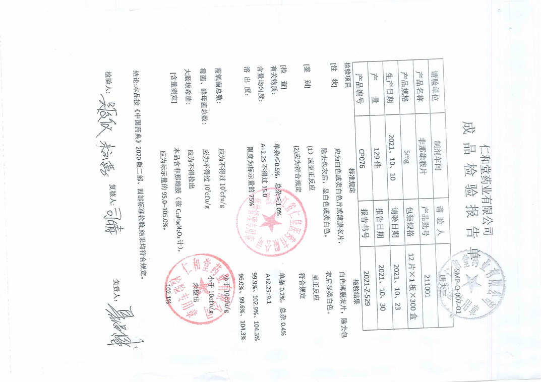 非那雄胺片21100