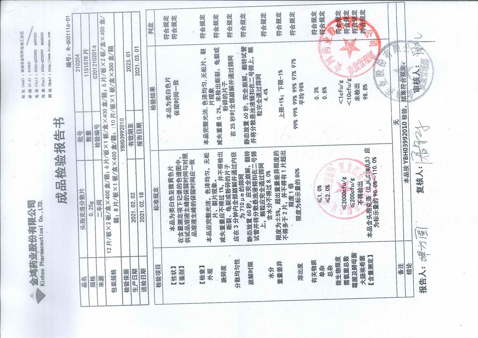 頭孢克洛分散片210