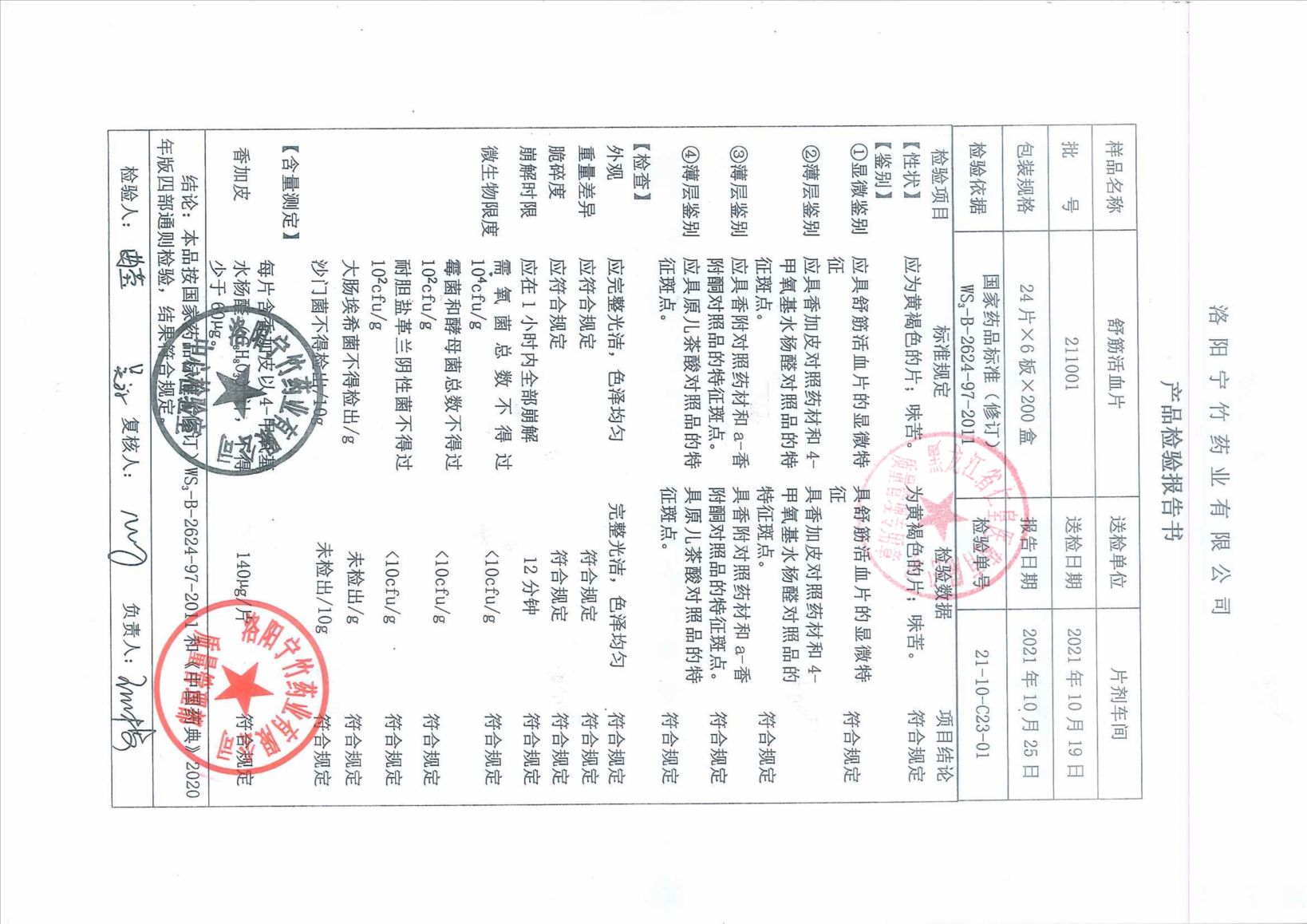 舒筋活血片21100