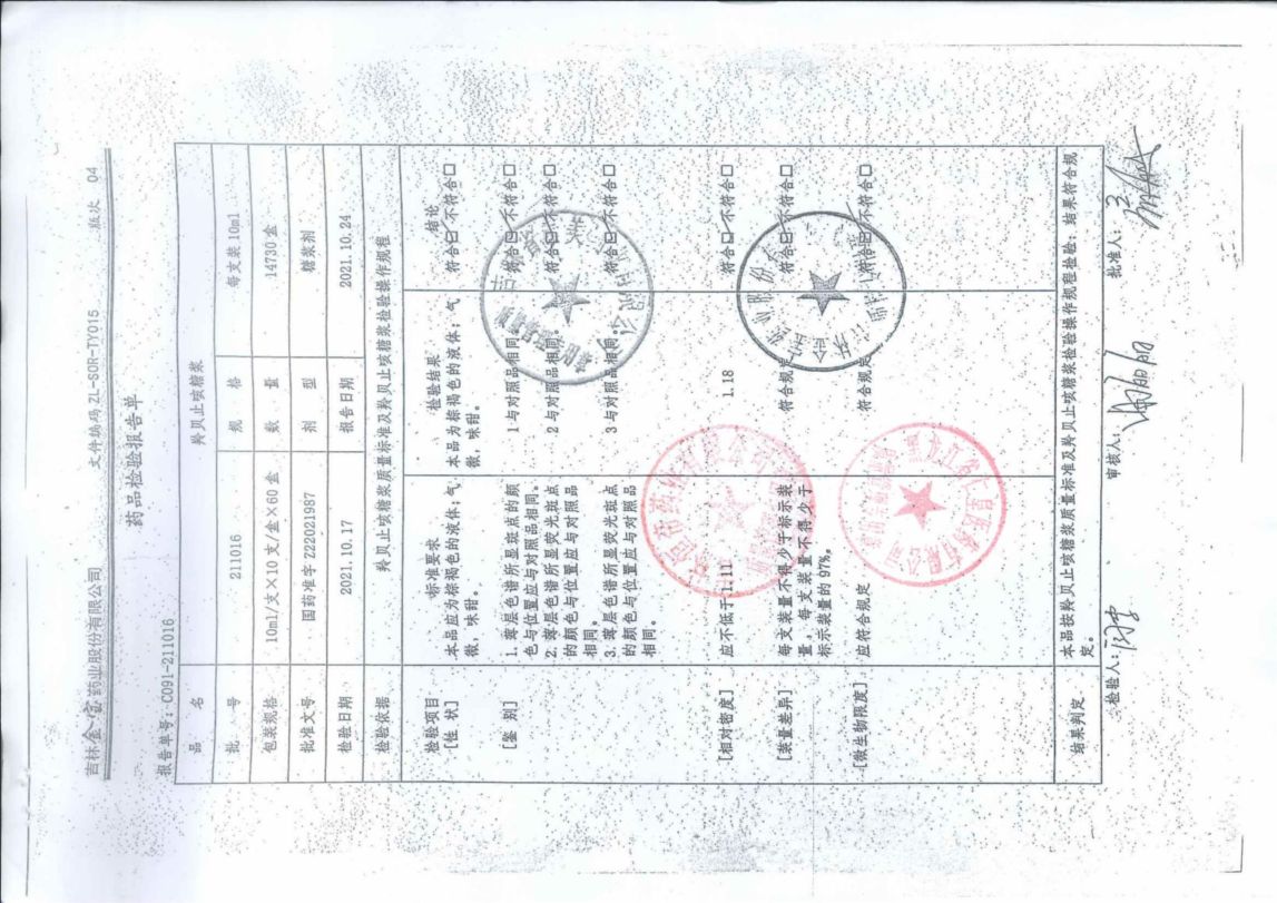 羚貝止咳糖漿2110