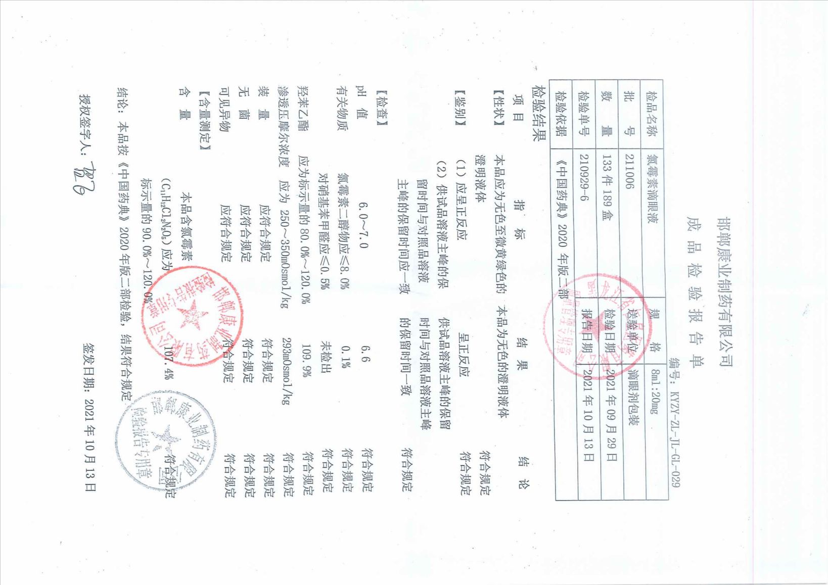 氯霉素滴眼液2110