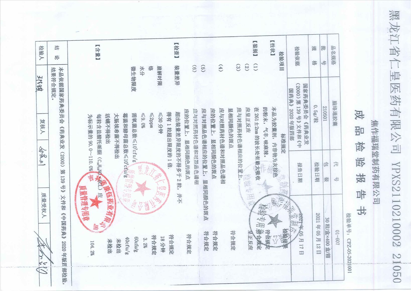 腦絡(luò)通膠囊21050
