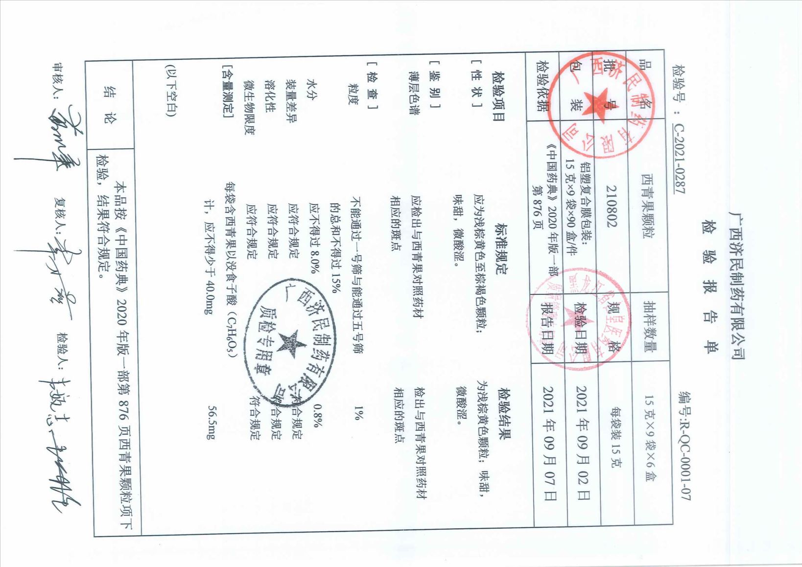 西青果顆粒21080