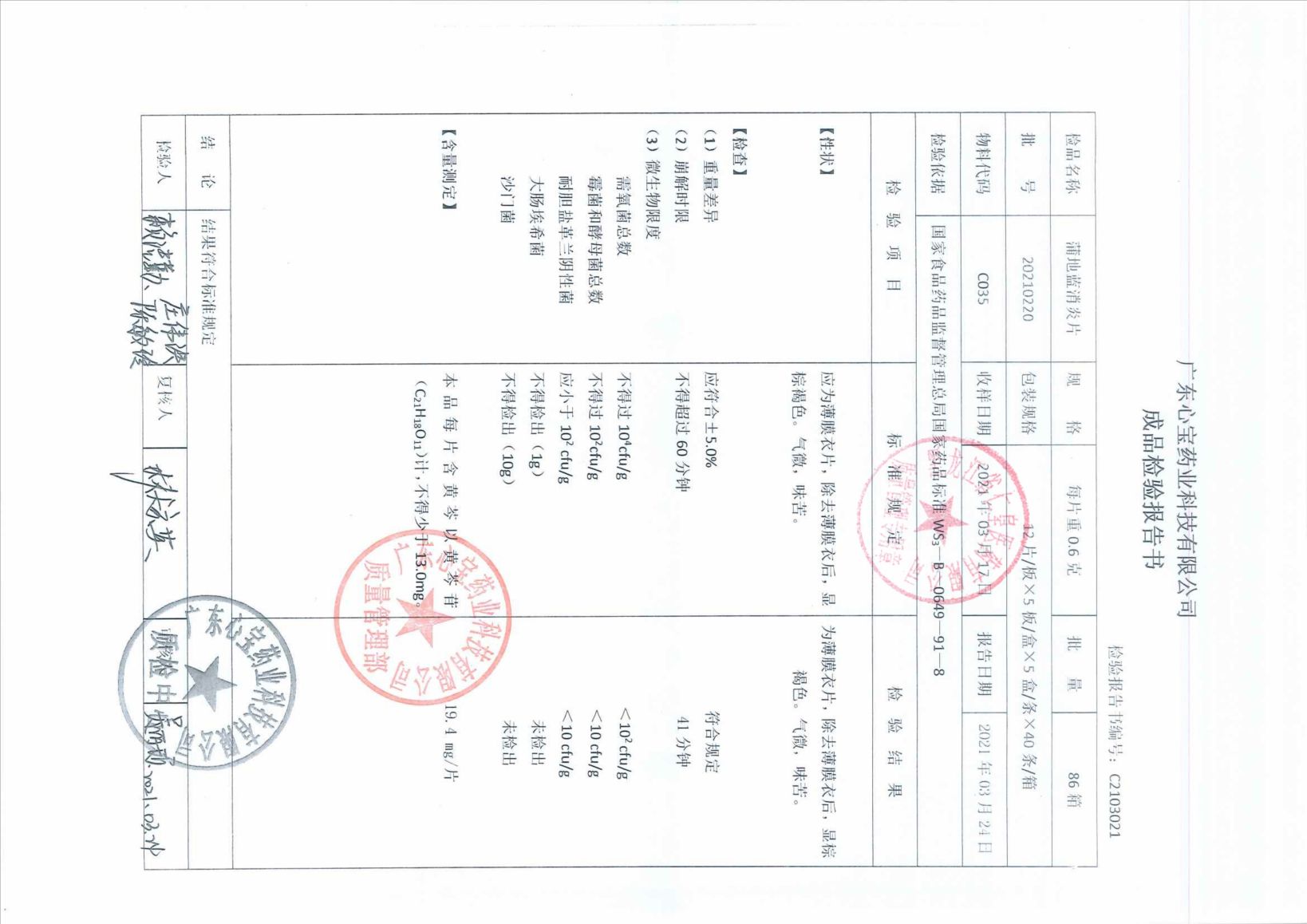 蒲地藍(lán)消炎片2021