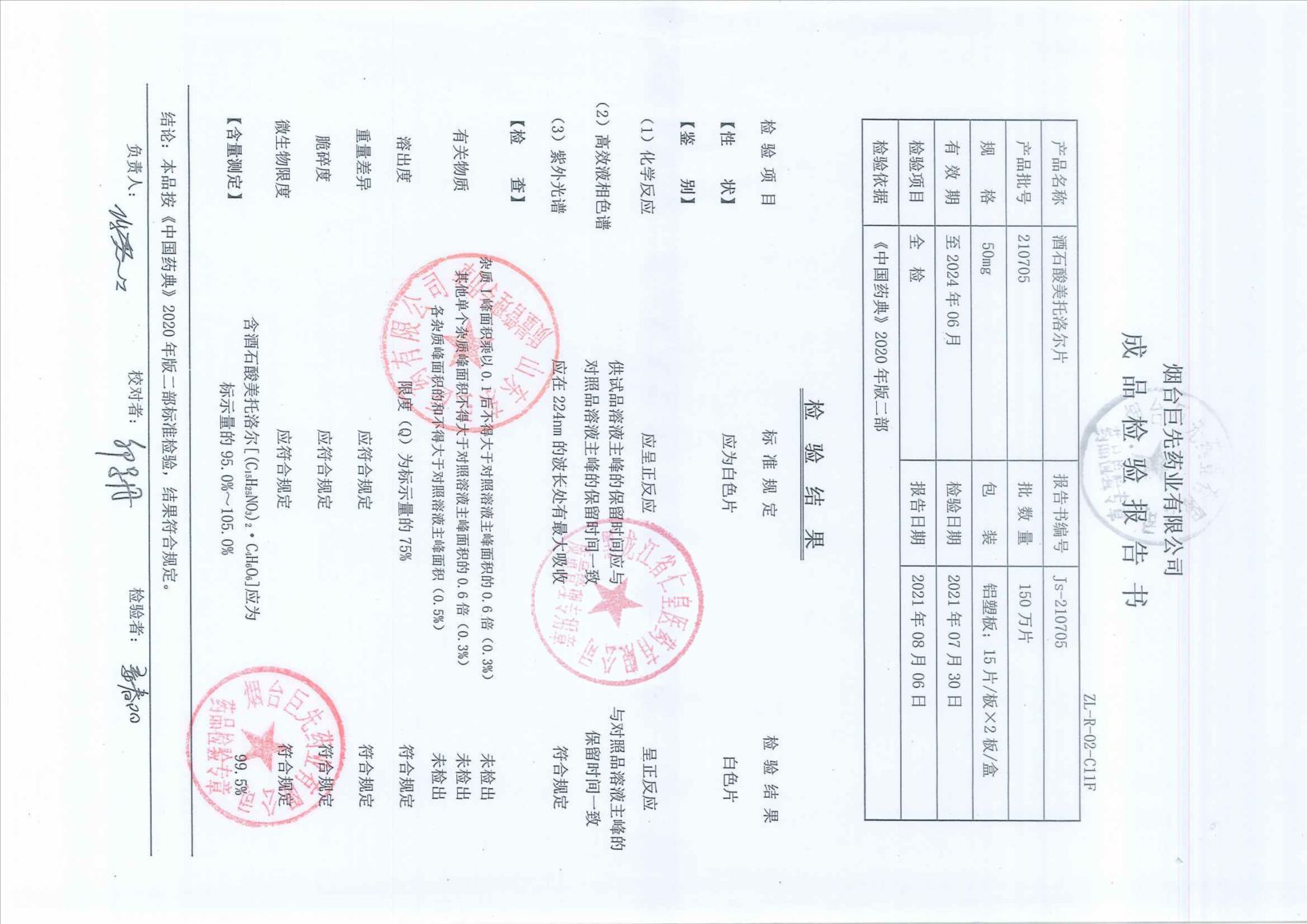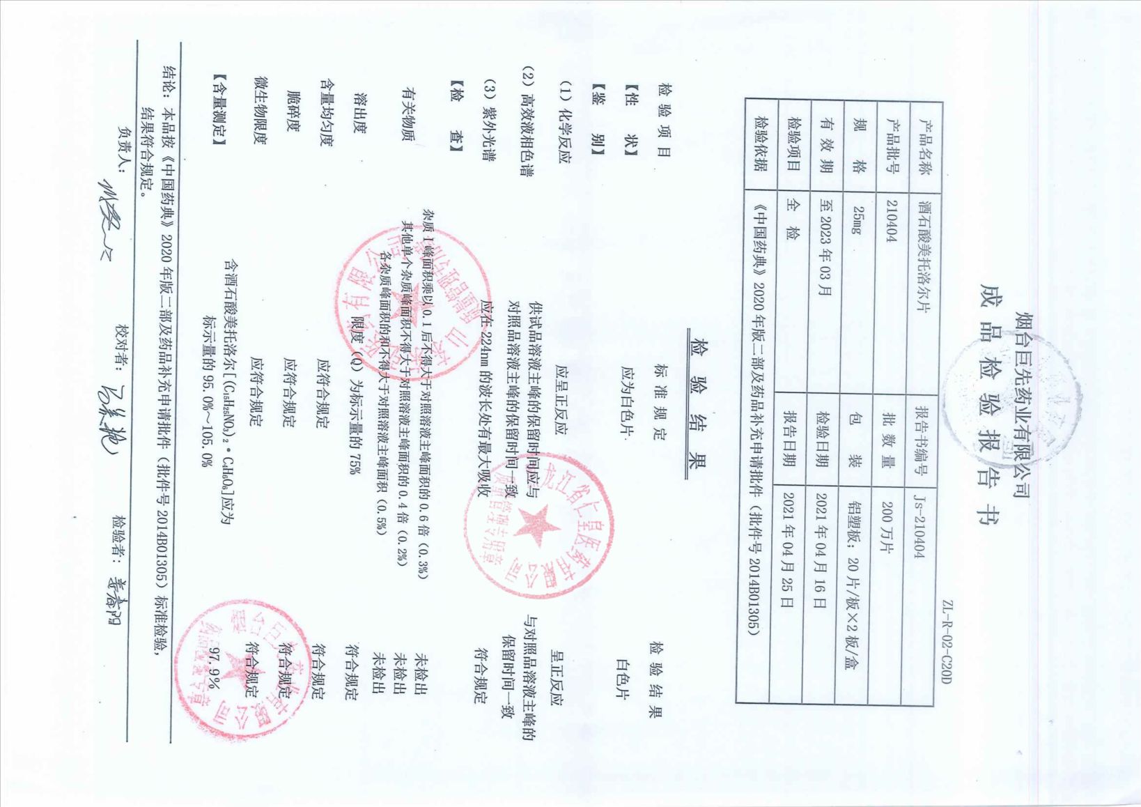 酒石酸美托洛爾片21