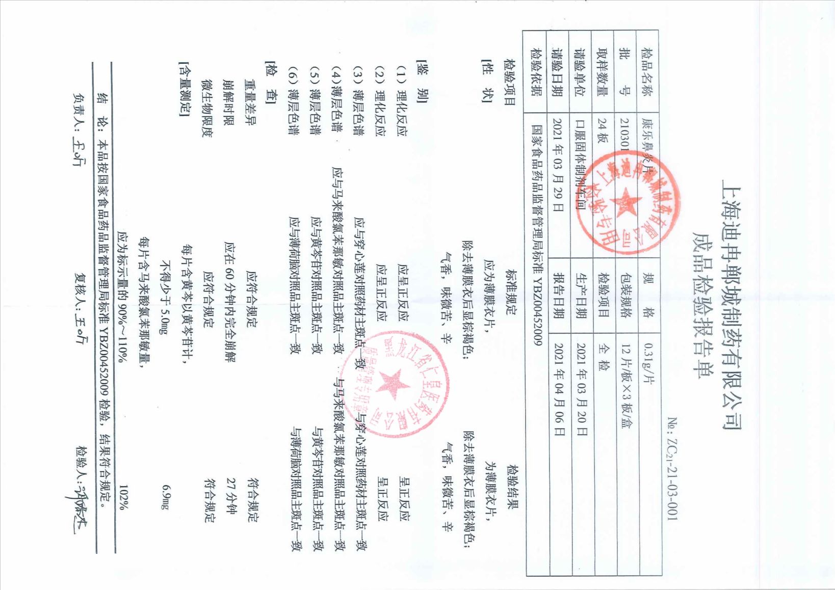 康樂鼻炎片21030