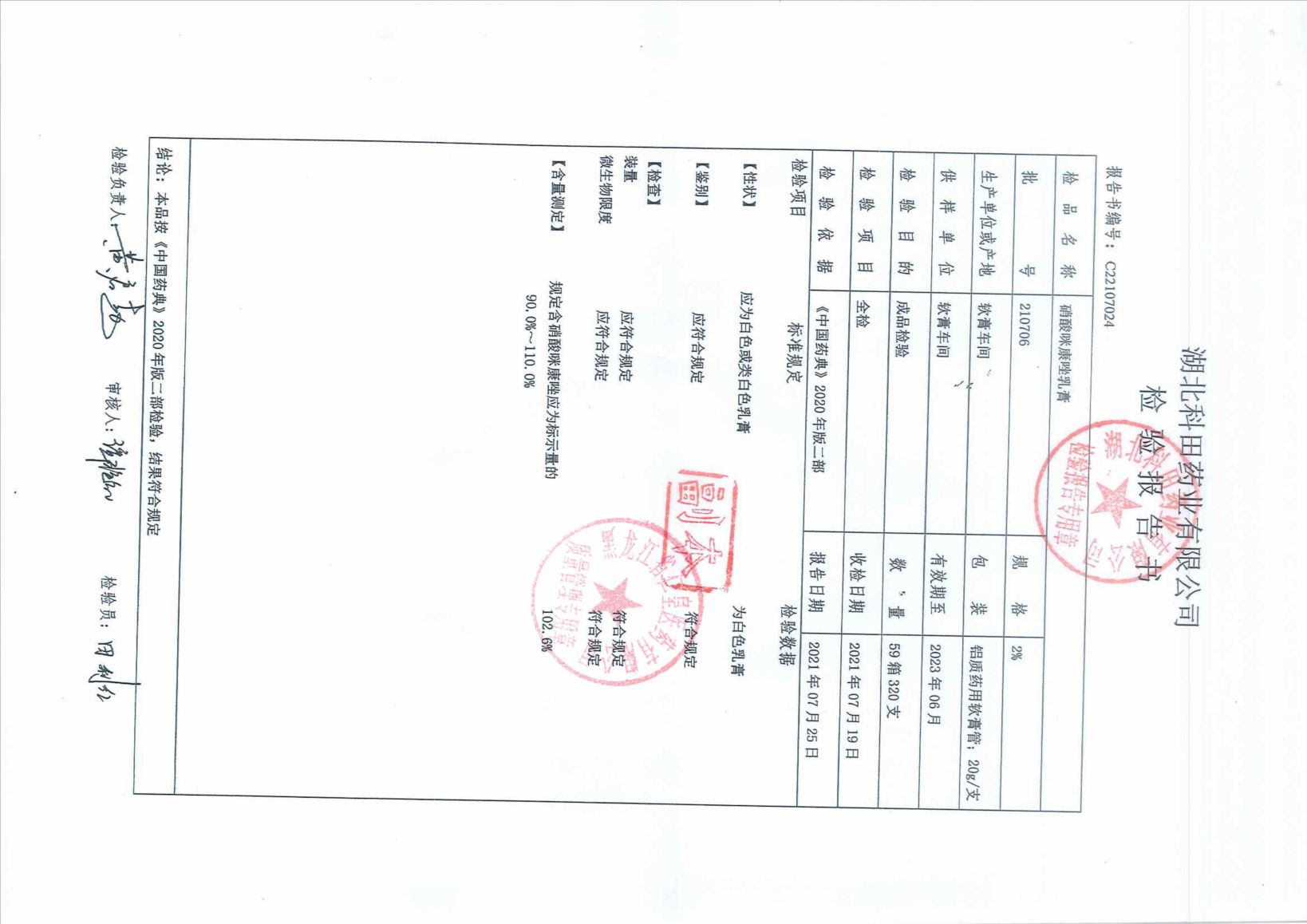 硝酸咪康唑乳膏210