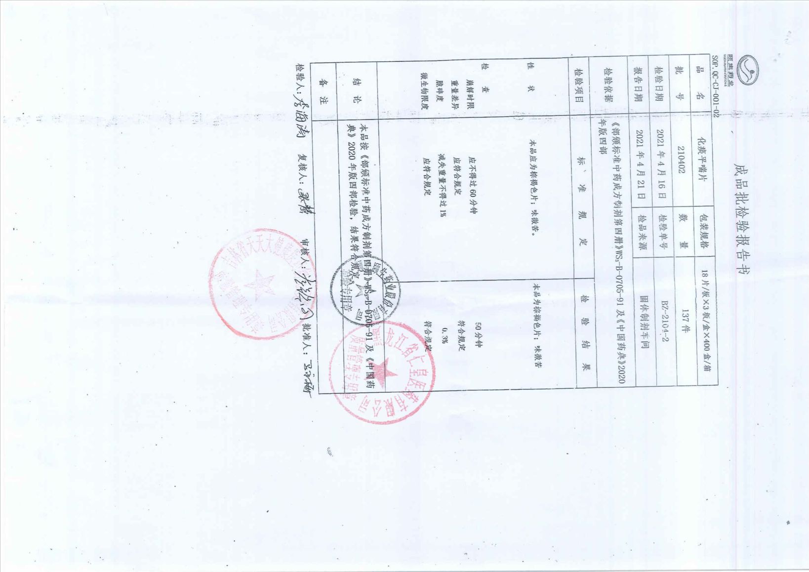 化痰平喘片21040
