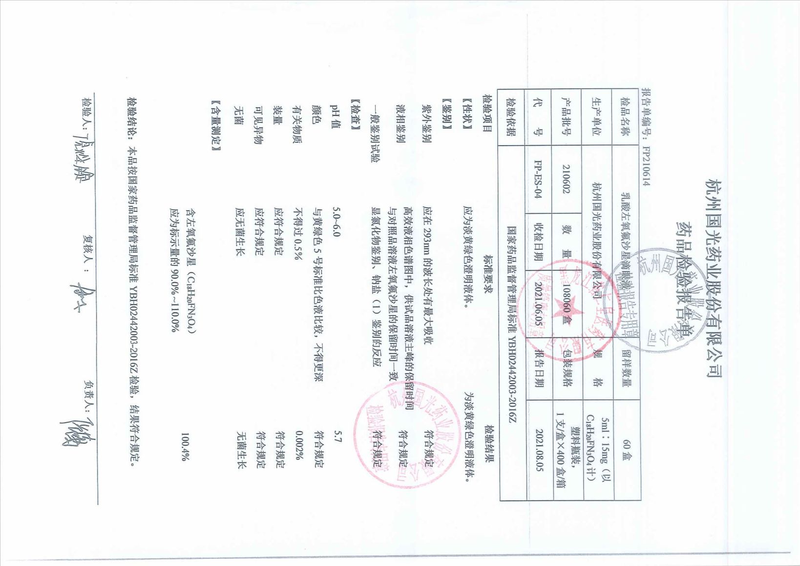 乳酸左氧氟沙星滴眼液