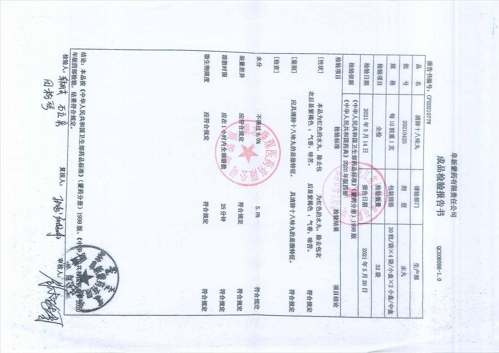 清肺十八味丸2021