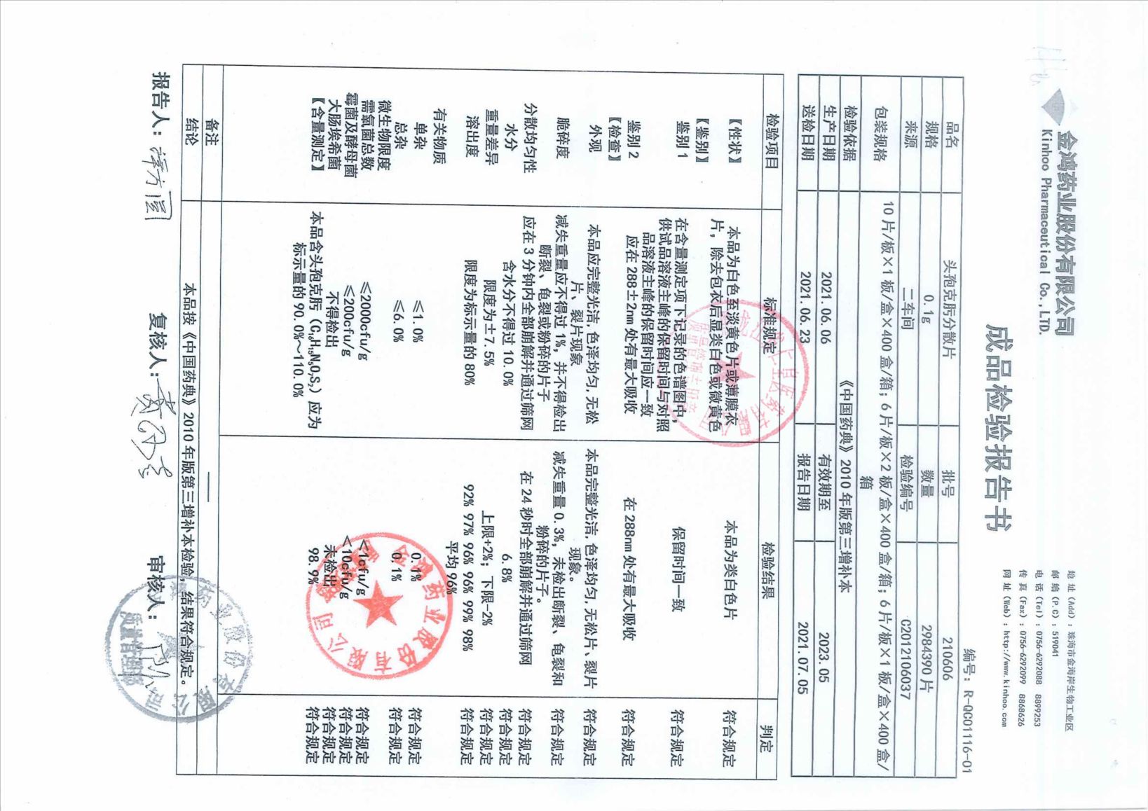 頭孢克肟分散片210