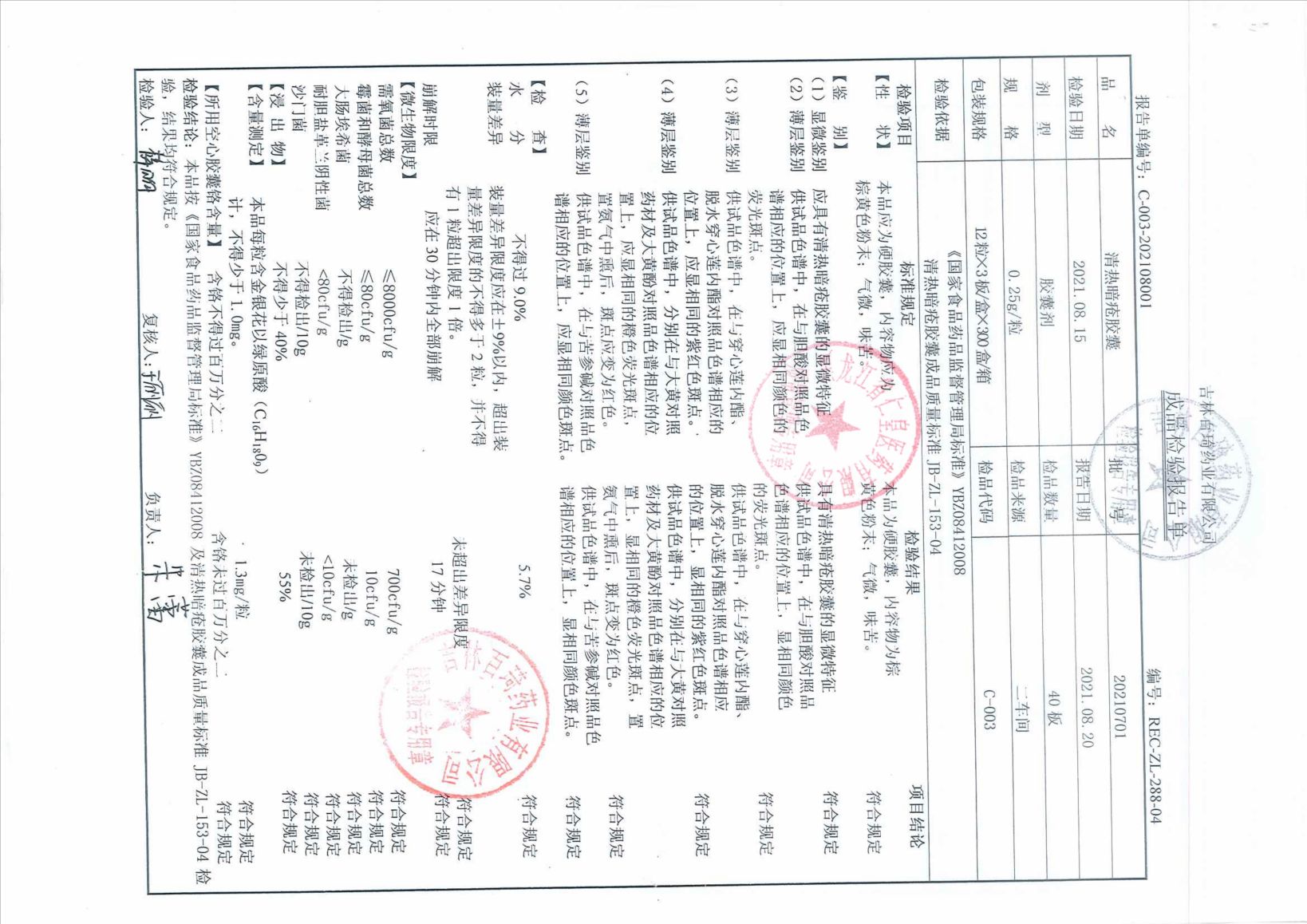 清熱暗瘡膠囊2021