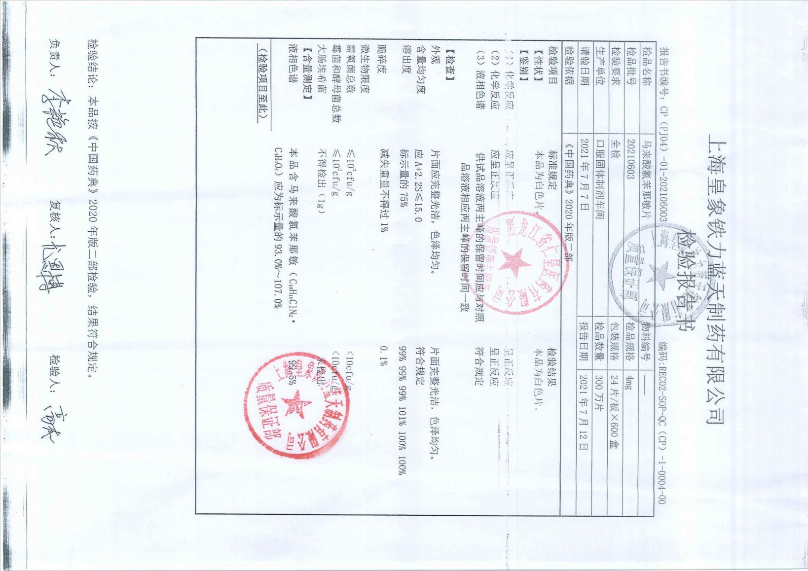 馬來(lái)酸氯苯那敏片20