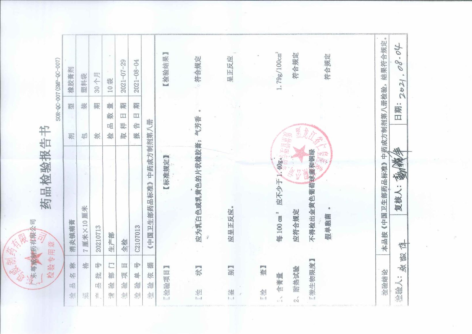 消炎鎮(zhèn)痛膏20210