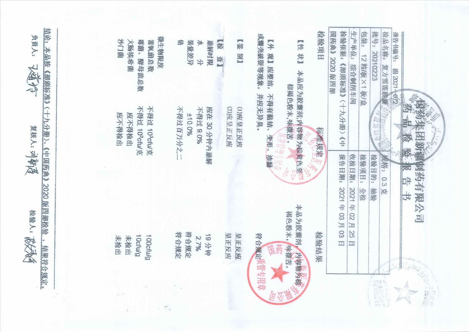 復(fù)方雪蓮膠囊2021