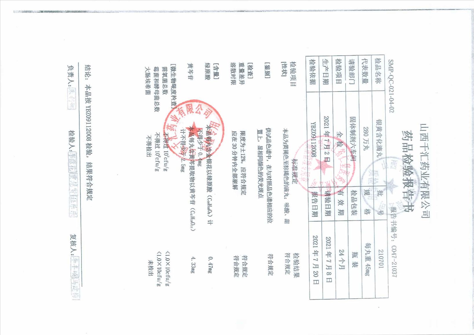 銀黃含化滴丸2107