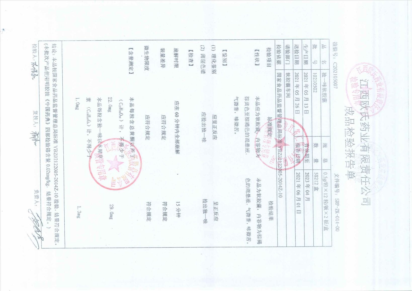 獨(dú)一味軟膠囊1021