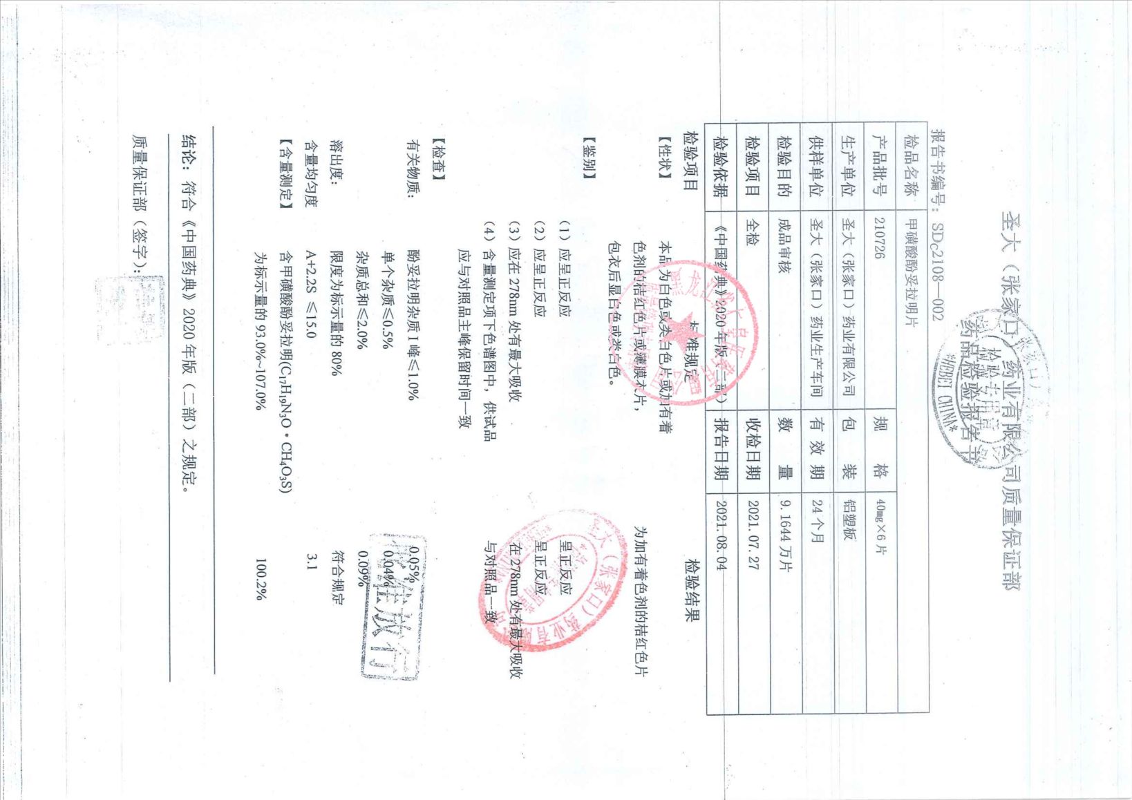 甲磺酸酚妥拉明片21