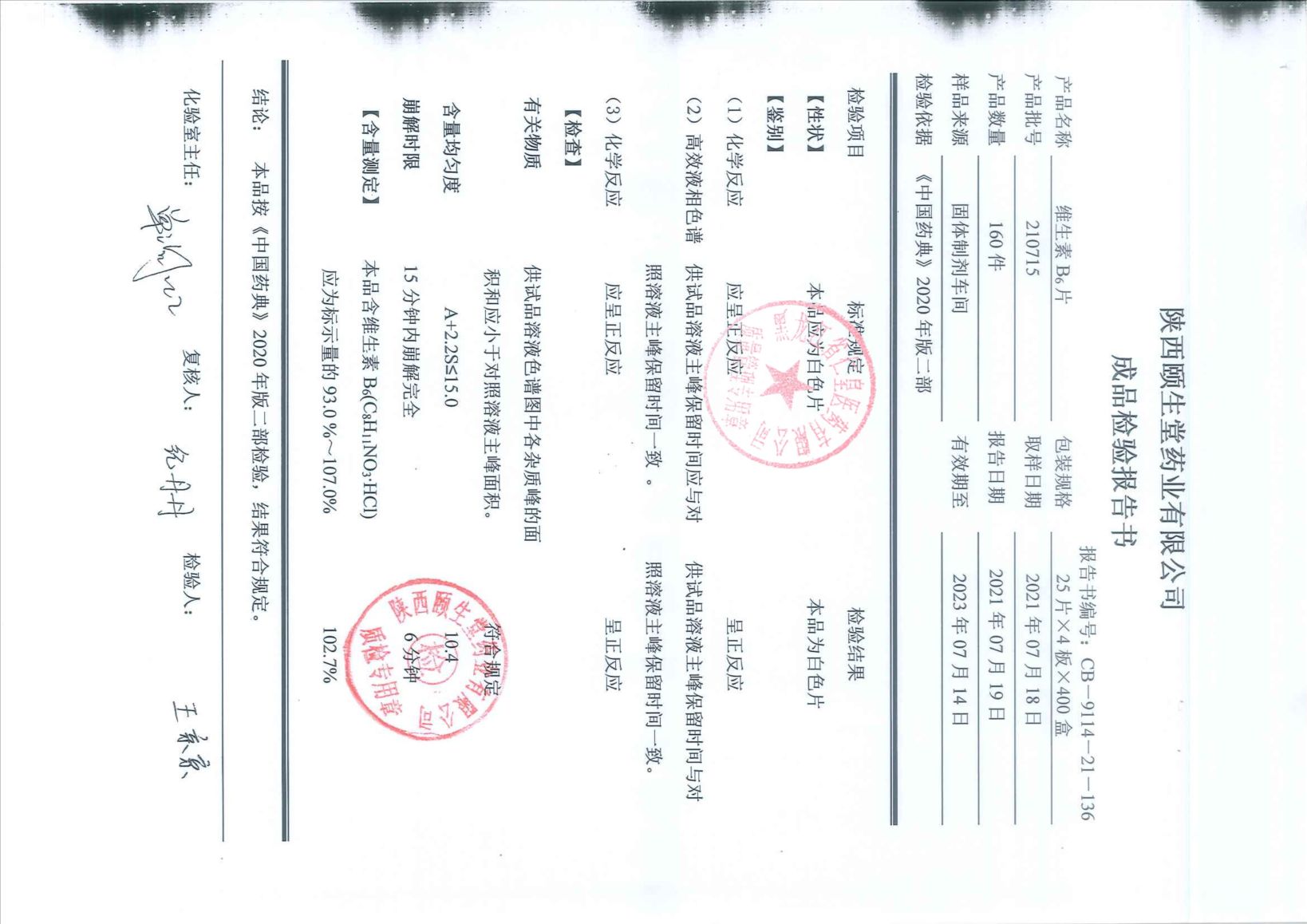 維生素B6片2107