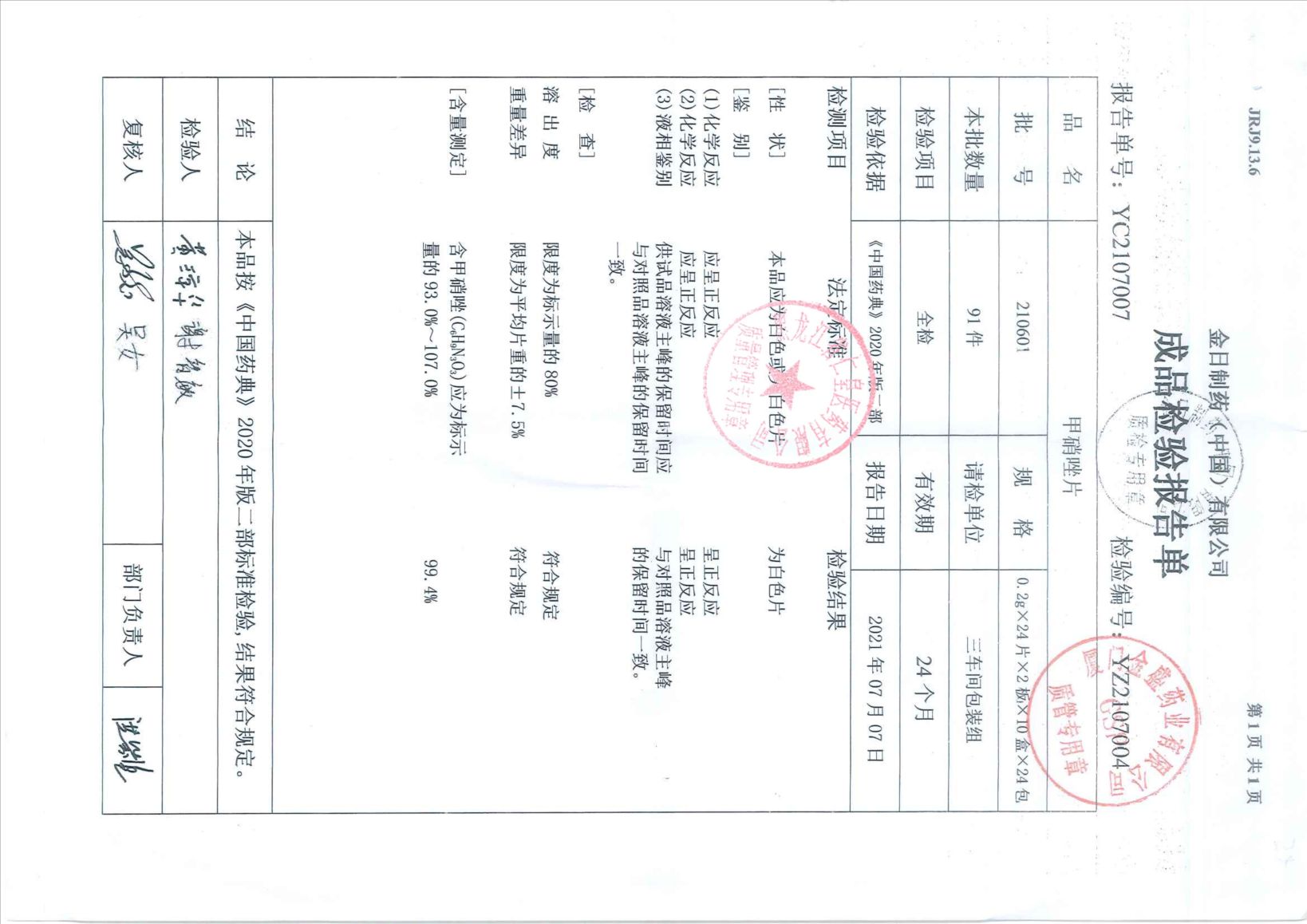 甲硝唑片210601