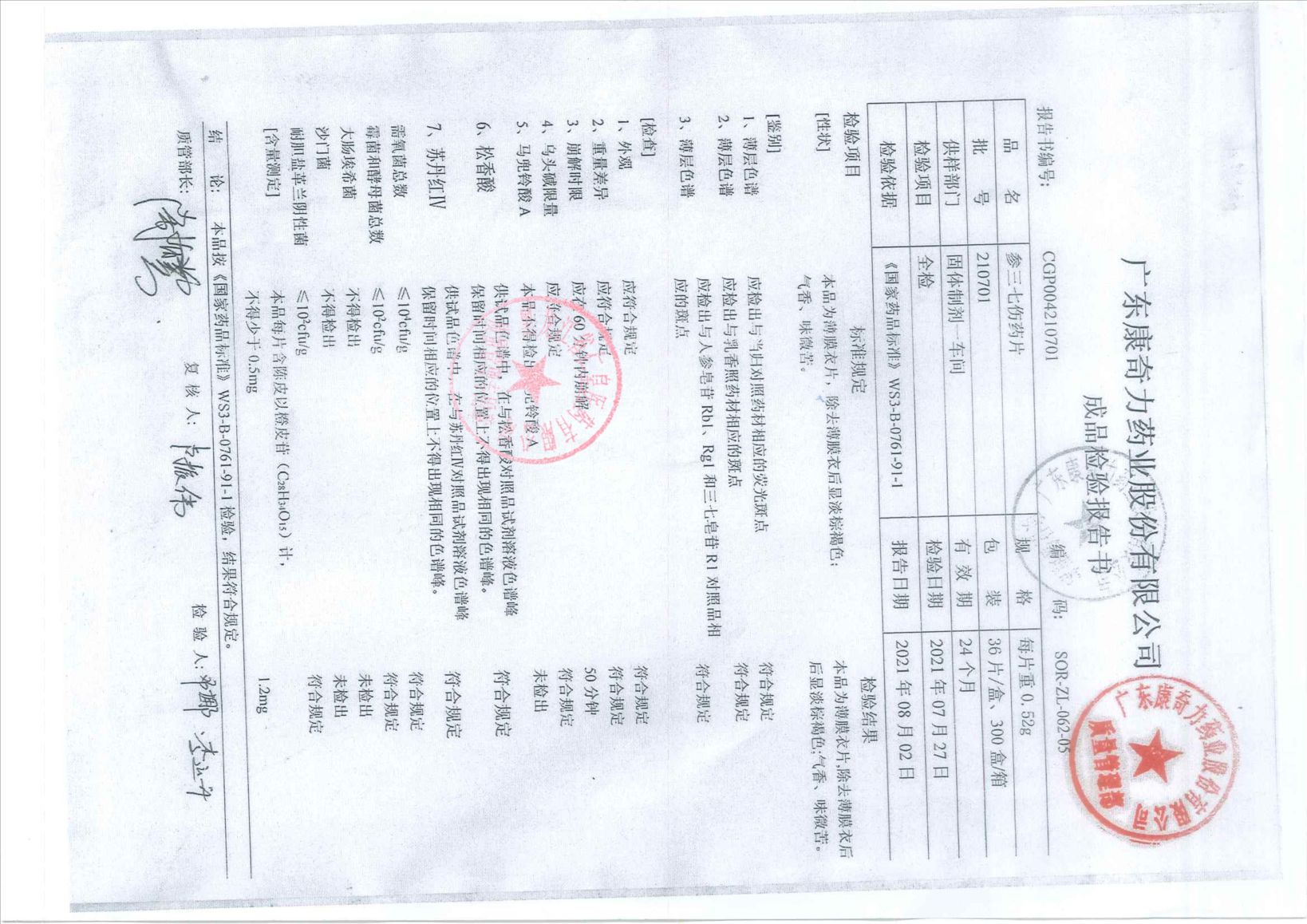 參三七傷藥片2107