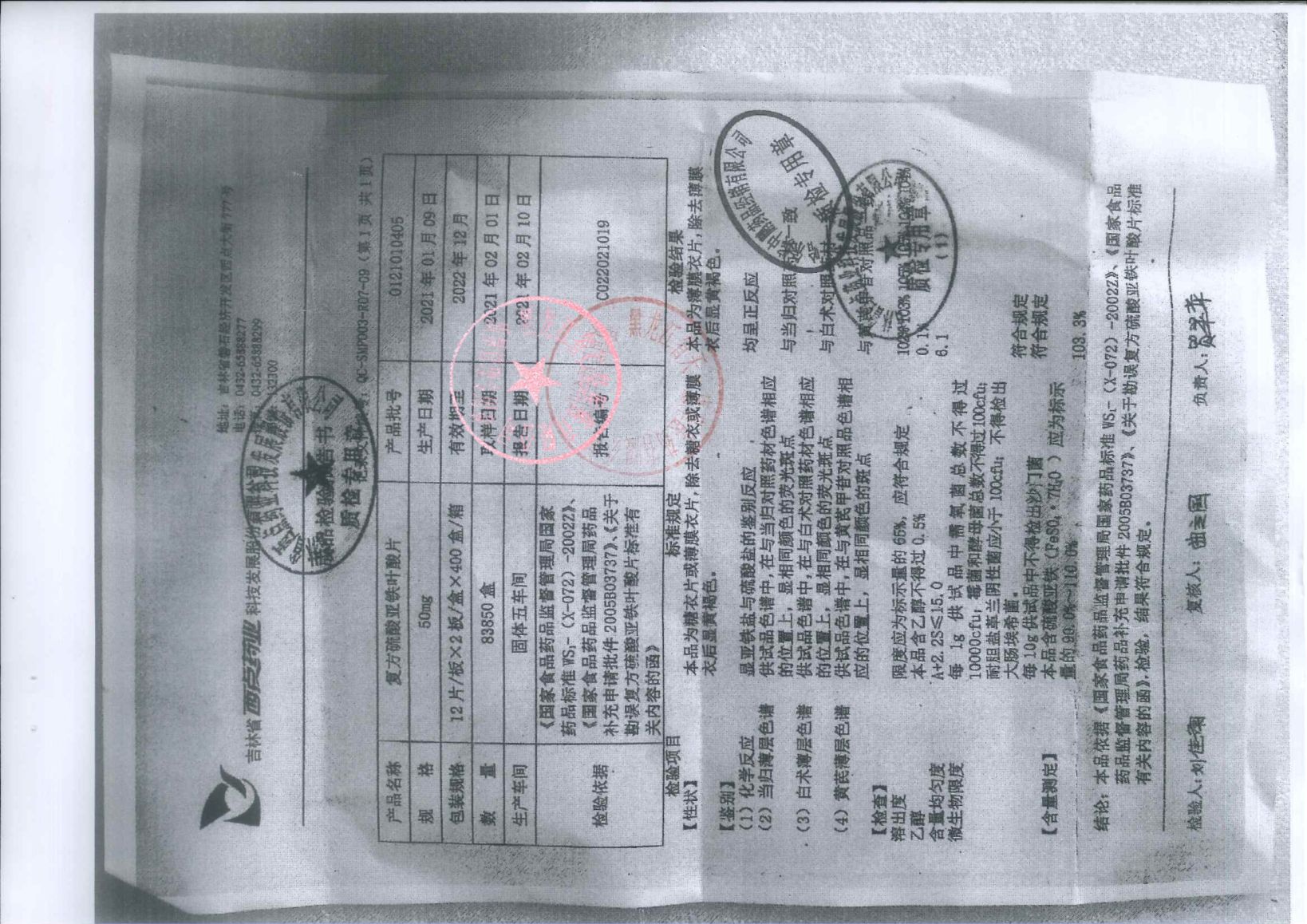 復方硫酸亞鐵葉酸片0