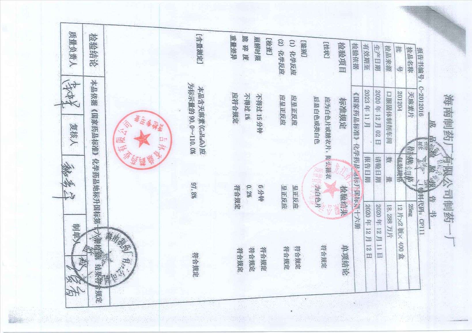 天麻素片201204