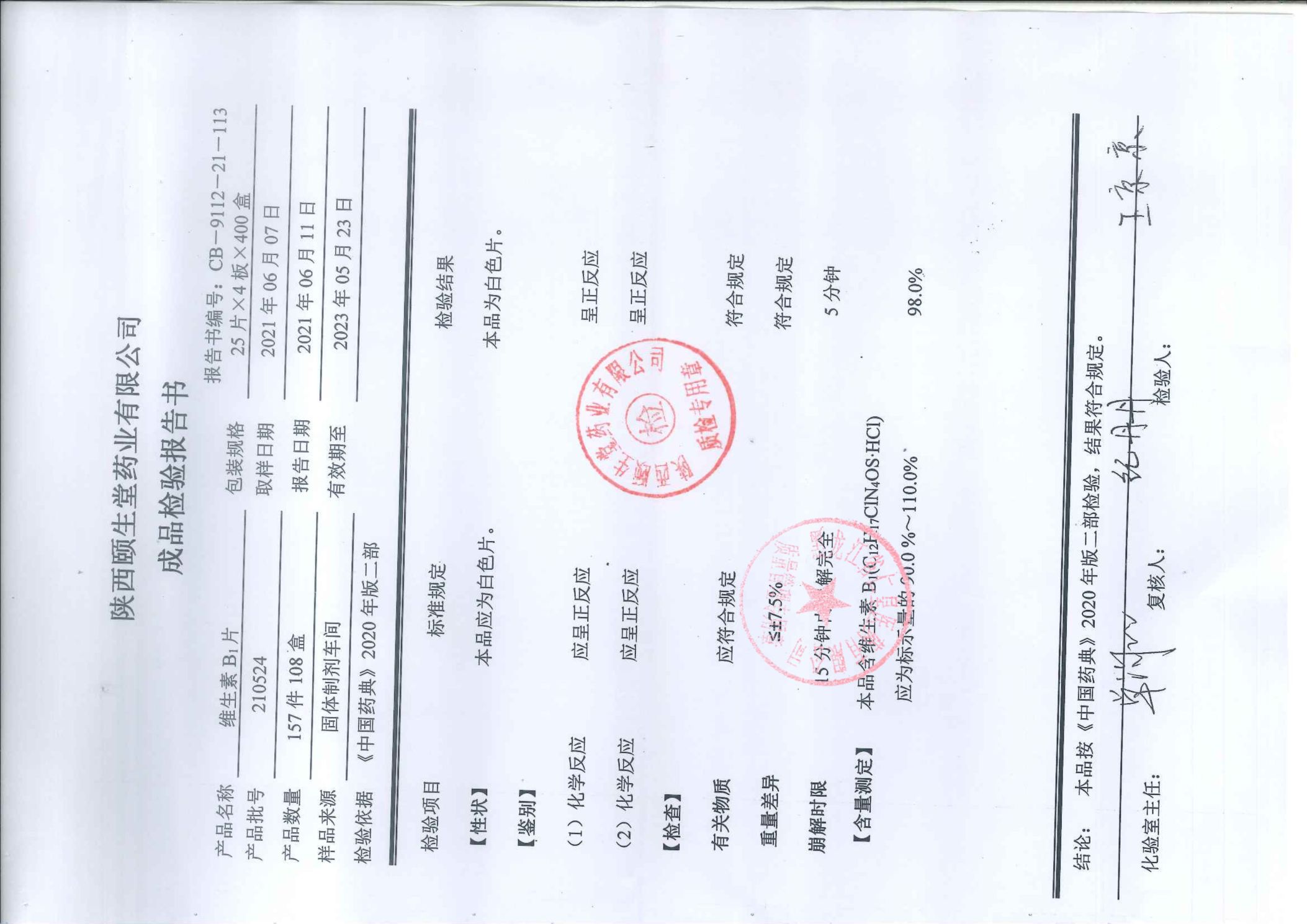 維生素B1片2105
