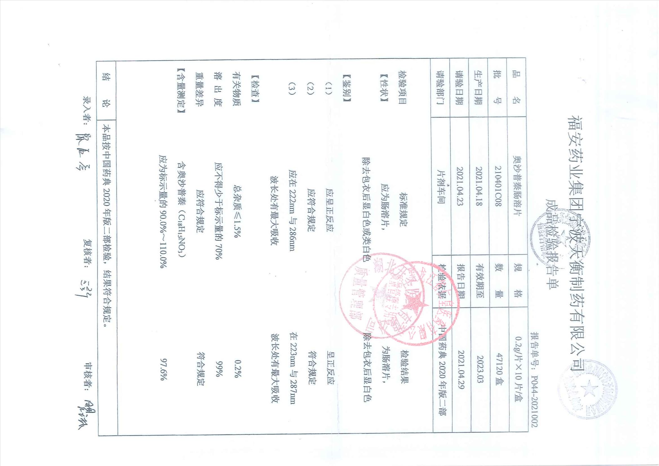 奧沙普秦腸溶片210