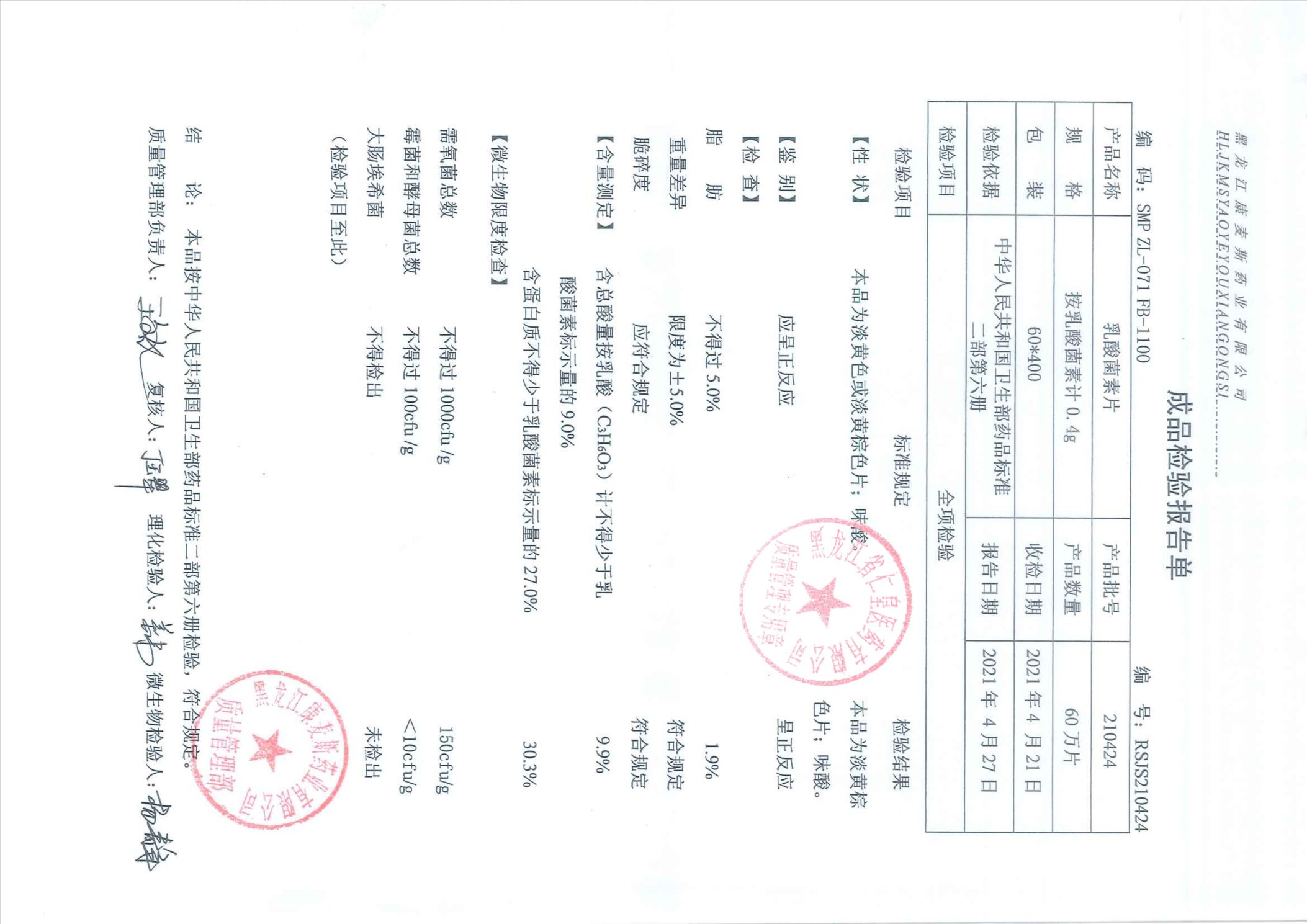 乳酸菌素片21042