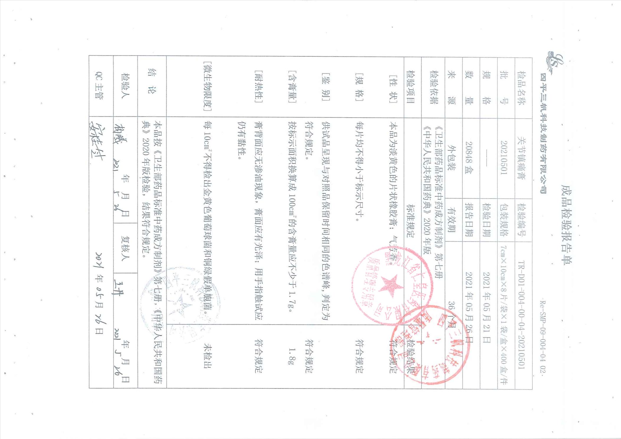 關(guān)節(jié)鎮(zhèn)痛膏20210