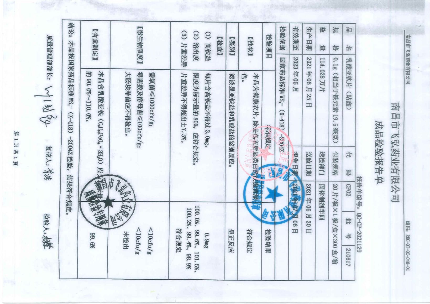 乳酸亞鐵片21061