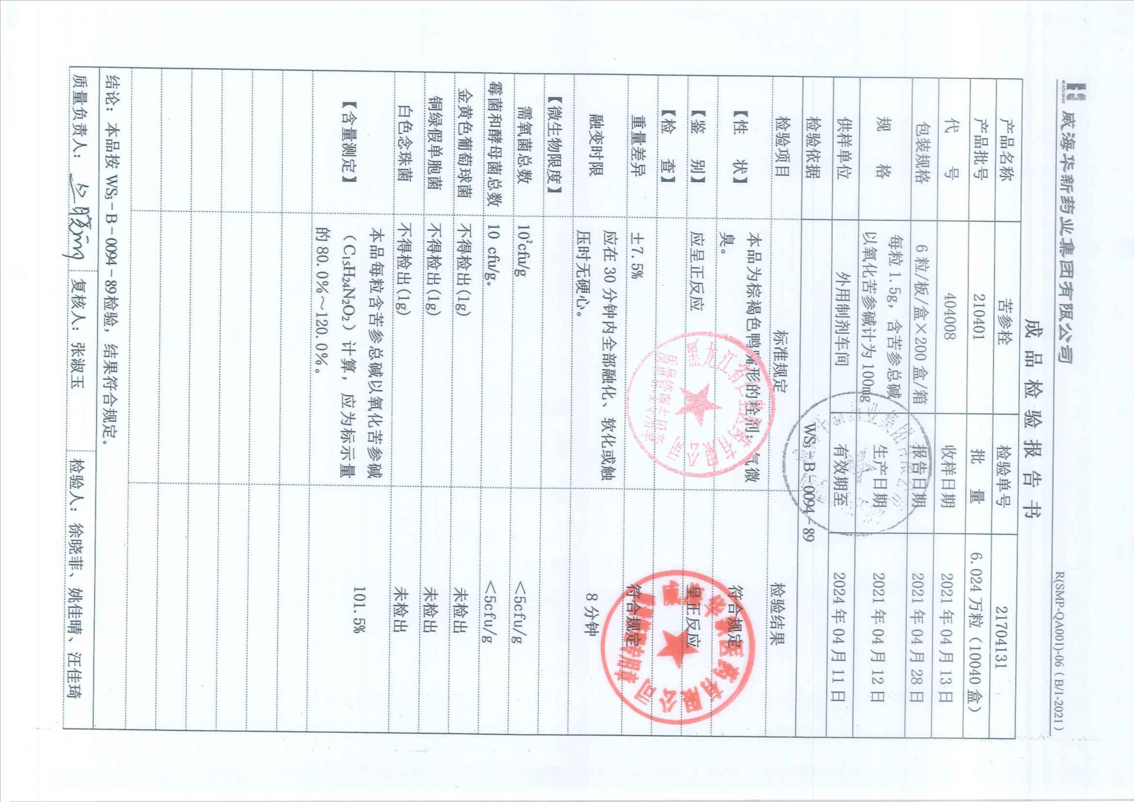 苦參栓210401