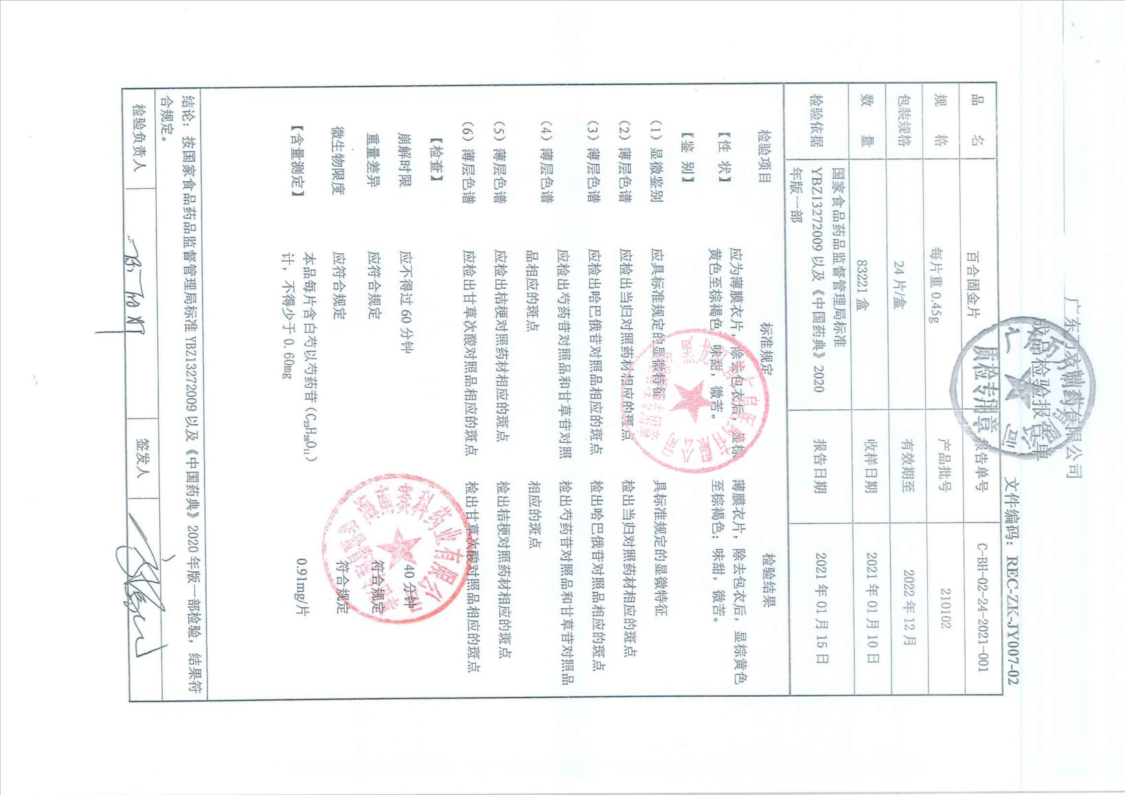 百合固金片21010