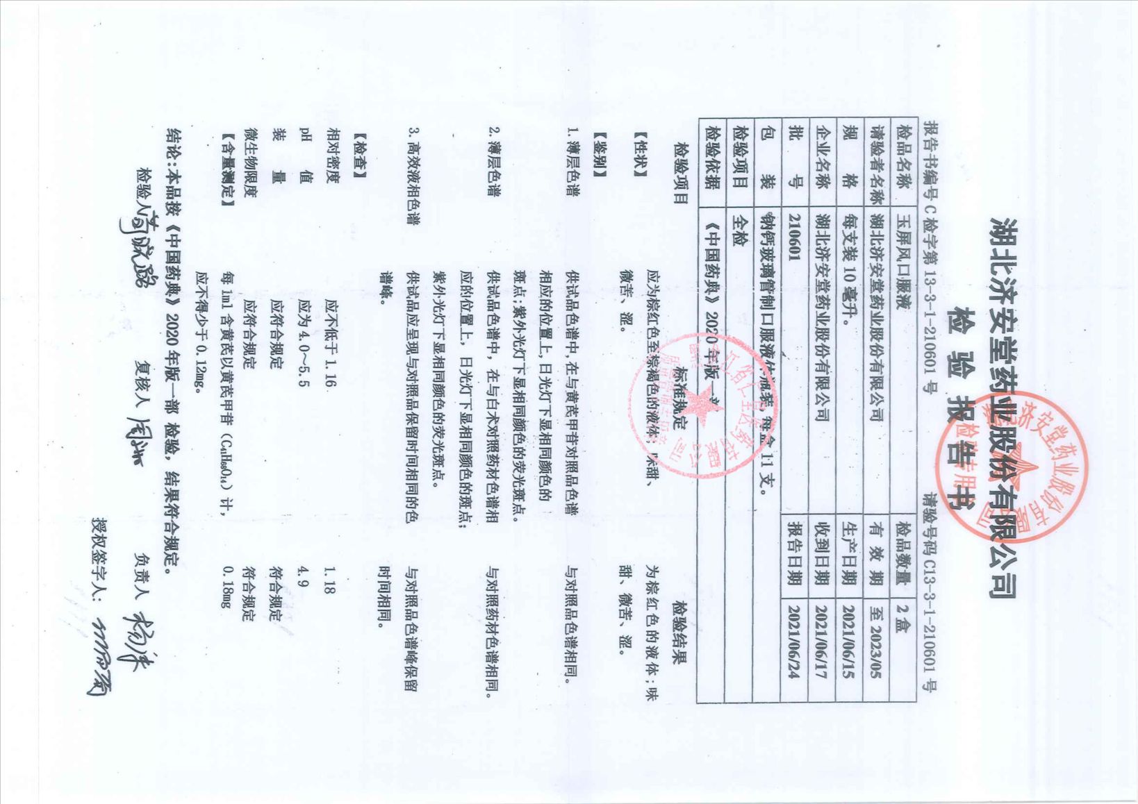 玉屏風(fēng)口服液2106