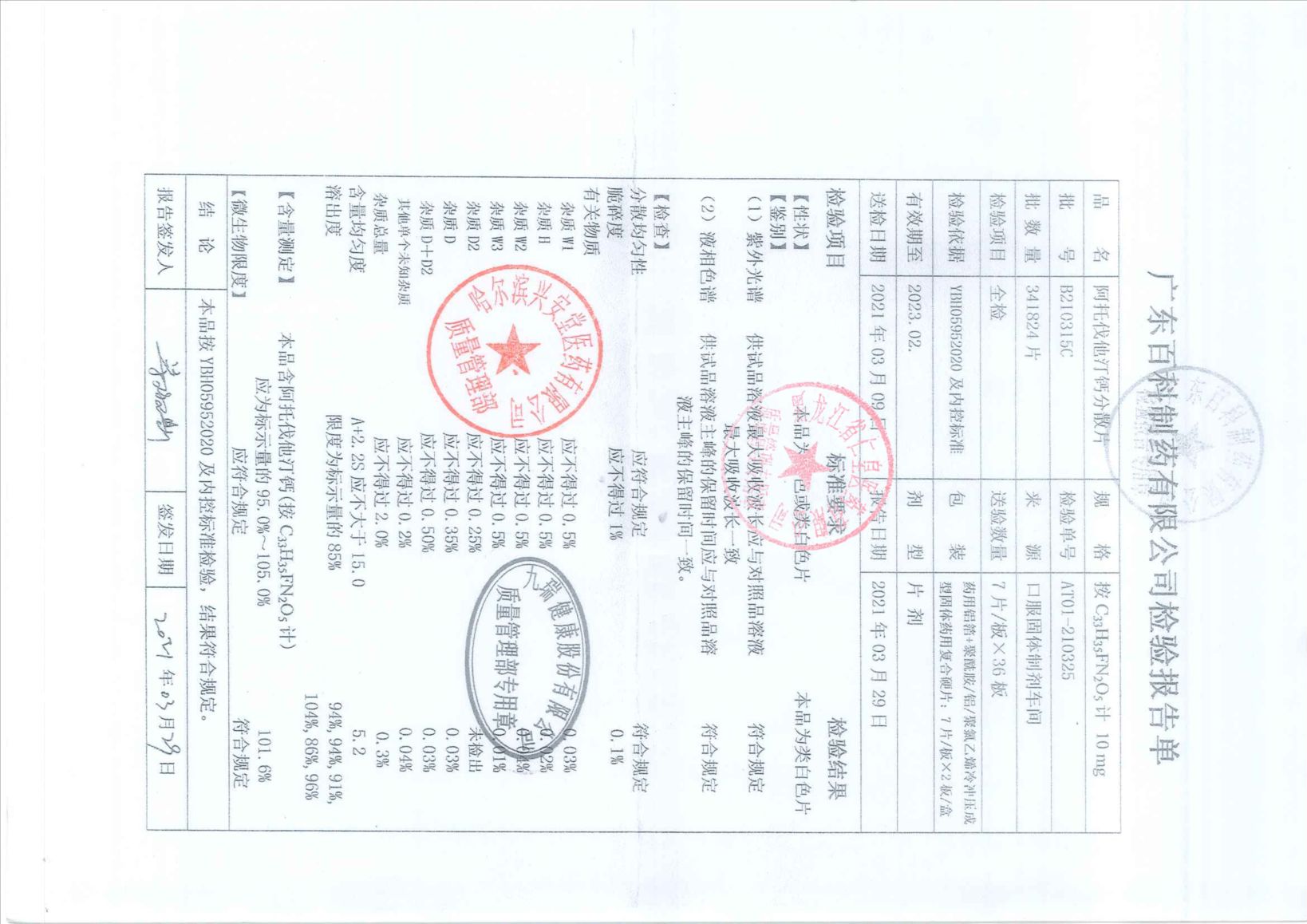 阿托伐他汀鈣分散片B