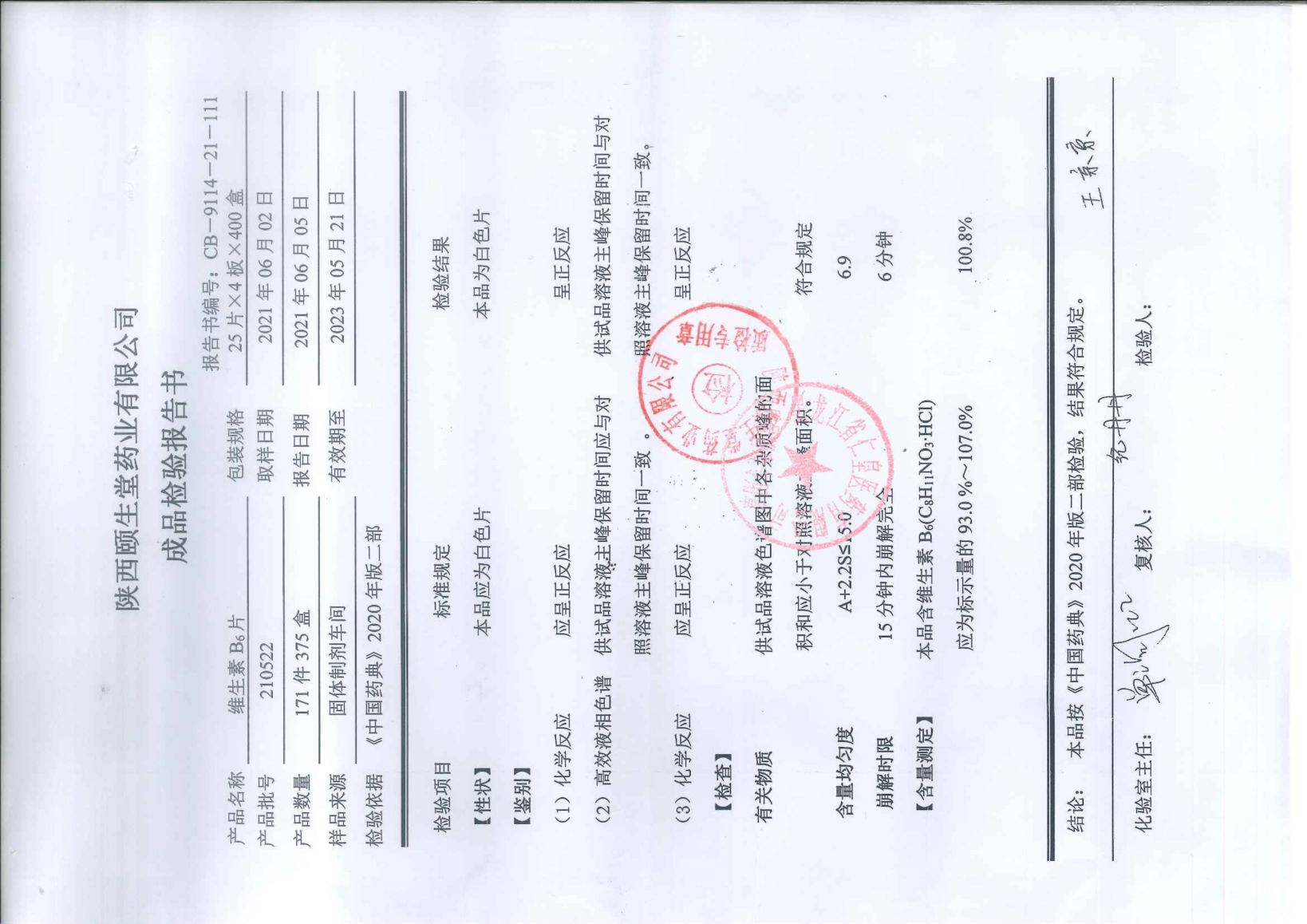維生素B6片2105