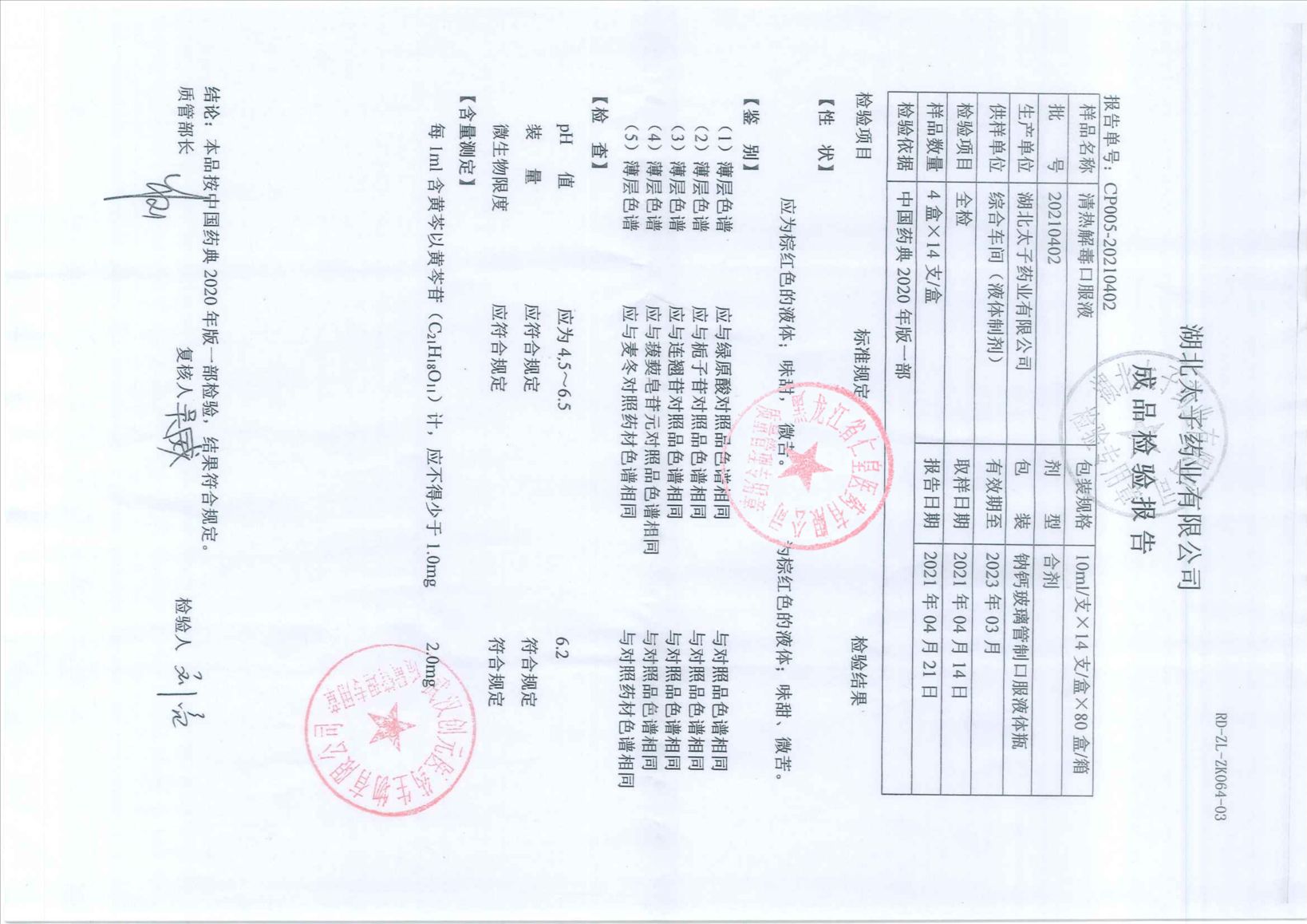 清熱解毒口服液202